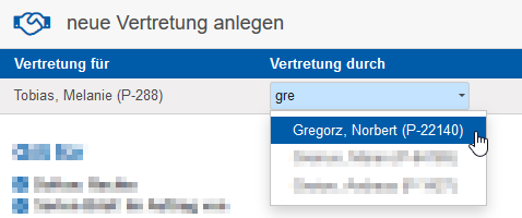 Wählen Sie eine Person aus, die Sie vertreten darf.