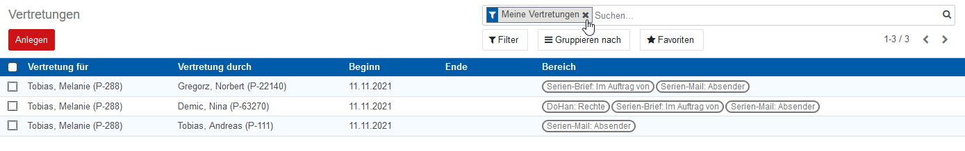 Oder Sie lassen sich die Vertretungsregelungen gruppieren.