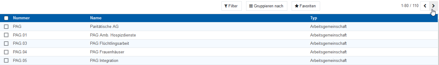 Sie sehen wie viele Gremien es gibt. Mit den Pfeil-Buttons können Sie sich die nächsten Seiten anzeigen lassen.