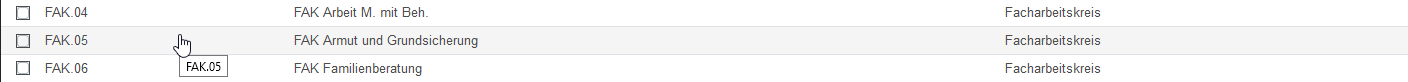 Sie bekommen eine Auflistung aller unserer Gremien mit Nummer, Name und Typ.