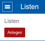 Sobald Sie sich im Menüpunkt “Listen” befinden, haben Sie die Möglichkeit mit Klick auf den Button “Anlegen” eine neue Liste anzulegen.