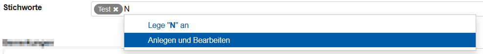 Um ein neues Stichwort zu hinterlegen, beginnen Sie das Wort zu schreiben und klicken im Anschluss auf “Anlegen und Bearbeiten”.