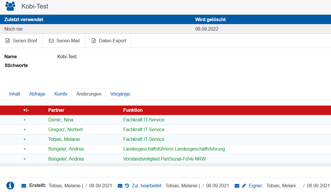 Das Löschdatum wird Ihnen in der Adessatenlisten angezeigt.