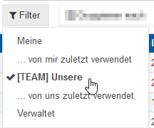 Sie möchten sich z. B. die Andressatenlisten der Kolleg*innen aus den gleichen Organisationseinheiten anzeigen lassen, dann wählen Sie unter “Filter” - [Team] Unsere - aus.