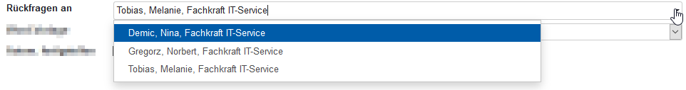 Zudem können Sie eine Person, die Vertretungsrechte hat oder sich selbst für den Bereich der Rückfragen hinterlegen.