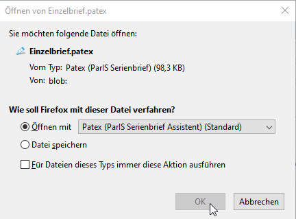 Es öffnet sich der Brief in dem Format, das Sie ausgewählt haben.