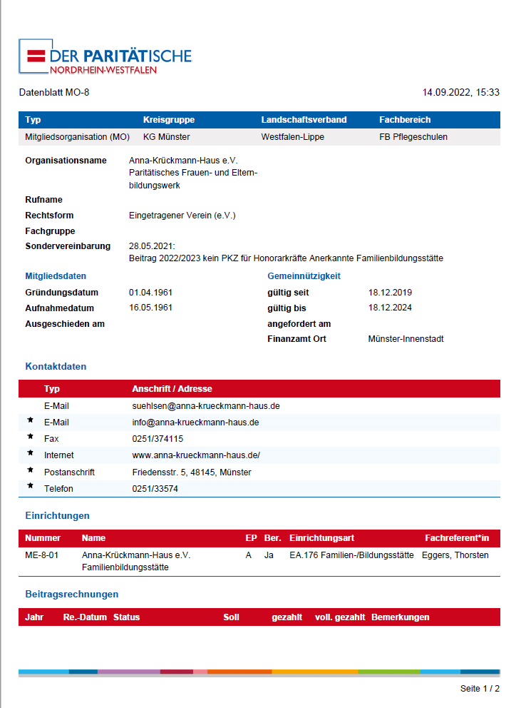Sie erhalten eine PDF mit sämtlichen Daten der Mitgliedsorganisation.