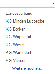 Für die Kreisgruppen gibt es zur Auswahl einen Filter. Dieses Auswahlfeld ist für den Bereich Mitgliederverwaltung gedacht. Bei allgmeinen Organisationen muss und sollte keine Kreisgruppe hinterlegt werden.