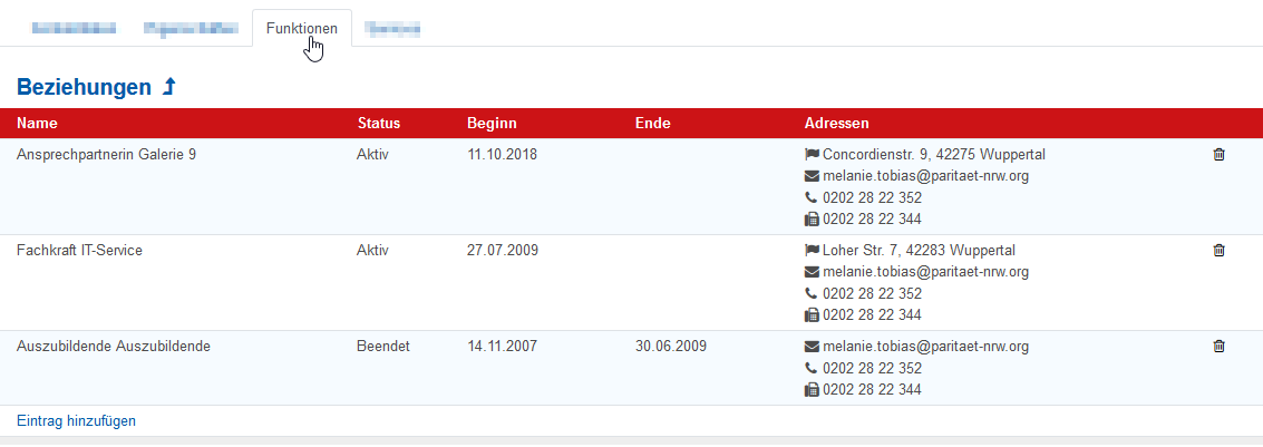 Über den Reiter “Funktionen” sehen Sie die Funktionen der Organisation und können neue Funktionen hinterlegen. Wie Sie eine Funktion hinterlegen können entnehmen Sie bitte dem Thema Funktion.