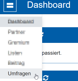 Um eine Umfrage zu erstellen, klicken Sie auf das Paritätische Logo und anschließend auf den Menüpunkt “Umfragen”.