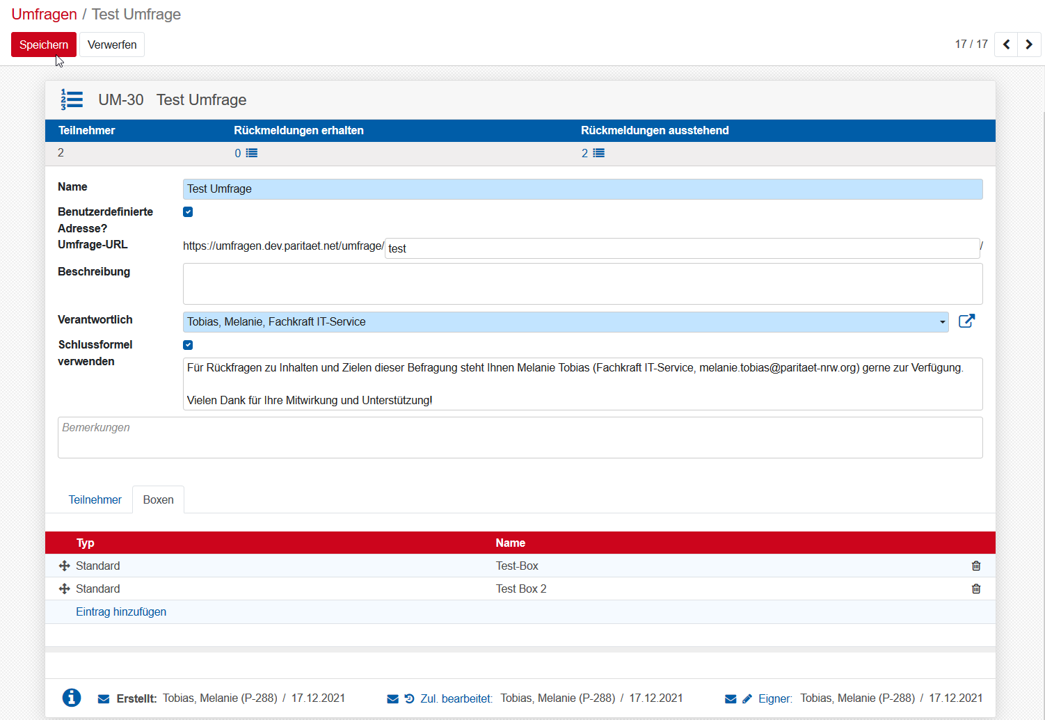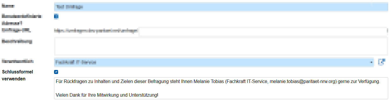 Wählen Sie eine verantwortliche Person für diese Umfrage aus. Falls Sie keinen anderen eintragen, werden Sie ausgewählt.