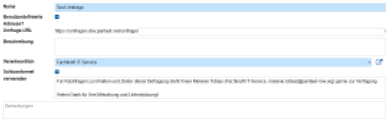 - Text (einzeilig): Es kann eine einzeilige Antwort hinterlegt werden.