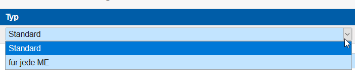 Wählt man “für jede ME” aus, so können Sie im Anschluss noch auswählen für welche Einrichtungsart. Bei “Standard” ist dieses Feld nicht ausfüllbar.
