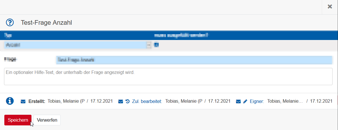 Sie können ggf. einen Hilfetext für die Frage hinterlegen.